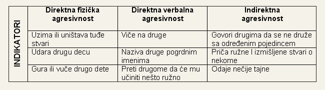 2) isključujuća ponašanja (ignorisanje, isključivanje),